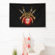 Mechanical, steampunk spider with gold, brass gears and a red glass lamp on a black background. Steampunk style.
