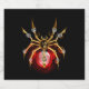 Mechanical, steampunk spider with gold, brass gears and a red glass lamp on a black background. Steampunk style.