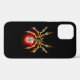 Mechanical, steampunk spider with gold, brass gears and a red glass lamp on a black background. Steampunk style.