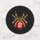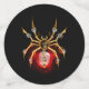 Mechanical, steampunk spider with gold, brass gears and a red glass lamp on a black background. Steampunk style.
