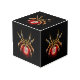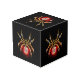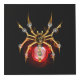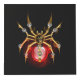 Mechanical, steampunk spider with gold, brass gears and a red glass lamp on a black background. Steampunk style.