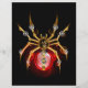 Mechanical, steampunk spider with gold, brass gears and a red glass lamp on a black background. Steampunk style.