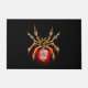 Mechanical, steampunk spider with gold, brass gears and a red glass lamp on a black background. Steampunk style.