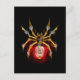 Mechanical, steampunk spider with gold, brass gears and a red glass lamp on a black background. Steampunk style.