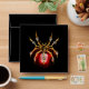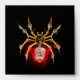 Mechanical, steampunk spider with gold, brass gears and a red glass lamp on a black background. Steampunk style.