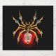 Mechanical, steampunk spider with gold, brass gears and a red glass lamp on a black background. Steampunk style.