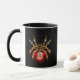 Mechanical, steampunk spider with gold, brass gears and a red glass lamp on a black background. Steampunk style.