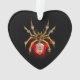 Mechanical, steampunk spider with gold, brass gears and a red glass lamp on a black background. Steampunk style.