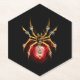 Mechanical, steampunk spider with gold, brass gears and a red glass lamp on a black background. Steampunk style.