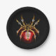 Mechanical, steampunk spider with gold, brass gears and a red glass lamp on a black background. Steampunk style.