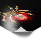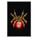 Mechanical, steampunk spider with gold, brass gears and a red glass lamp on a black background. Steampunk style.
