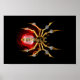 Mechanical, steampunk spider with gold, brass gears and a red glass lamp on a black background. Steampunk style.
