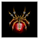 Mechanical, steampunk spider with gold, brass gears and a red glass lamp on a black background. Steampunk style.
