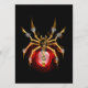 Mechanical, steampunk spider with gold, brass gears and a red glass lamp on a black background. Steampunk style.