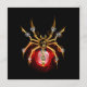 Mechanical, steampunk spider with gold, brass gears and a red glass lamp on a black background. Steampunk style.