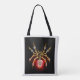 Mechanical, steampunk spider with gold, brass gears and a red glass lamp on a black background. Steampunk style.
