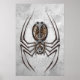 This unique spider design is constructed out of old metal and rusting gears. The steampunk inspired arachnid sits with four of its legs stretching up and the other four reaching down. A shadow falls onto the rough stainless steel background which makes the spider appear to float just above the surface. This symmetrical pattern is a beautiful and stylish representation of this little crawling creature.