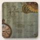A collage illustration of grunge and gears, a pocket watch and antique script writing. Victorian steampunk design makes a perfect gift for the men in your life.