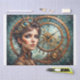 This striking tissue paper for decoupage features a captivating female portrait set against an intricate mechanical clockwork backdrop in full steampunk style. Brass gears, exposed mechanisms, Roman numerals, and burnished metallic tones create a rich industrial atmosphere inspired by Victorian-era imagination and retro-futuristic design.