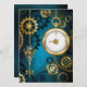 Steampunk turquoise Background with Gears Advice Card