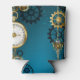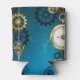 Turquoise, textured, steampunk background with brass and gold gears, a silver key and the clock. Steampunk style.