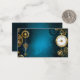Turquoise, textured, steampunk background with brass and gold gears, a silver key and the clock. Steampunk style.