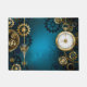 Turquoise, textured, steampunk background with brass and gold gears, a silver key and the clock. Steampunk style.