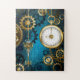 Steampunk turquoise Background with Gears Jigsaw Puzzle