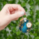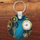 Turquoise, textured, steampunk background with brass and gold gears, a silver key and the clock. Steampunk style.