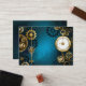 Turquoise, textured, steampunk background with brass and gold gears, a silver key and the clock. Steampunk style.