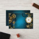 Turquoise, textured, steampunk background with brass and gold gears, a silver key and the clock. Steampunk style.