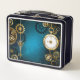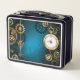 Steampunk turquoise Background with Gears Metal Lunch Box