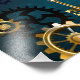 Steampunk turquoise Background with Gears Photo Print