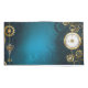 Turquoise, textured, steampunk background with brass and gold gears, a silver key and the clock. Steampunk style.