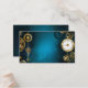Turquoise, textured, steampunk background with brass and gold gears, a silver key and the clock. Steampunk style.