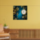Steampunk turquoise Background with Gears Poster