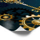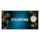Turquoise, textured, steampunk background with brass and gold gears, a silver key and the clock. Steampunk style.