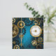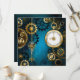 Turquoise, textured, steampunk background with brass and gold gears, a silver key and the clock. Steampunk style.