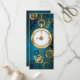 Turquoise, textured, steampunk background with brass and gold gears, a silver key and the clock. Steampunk style.