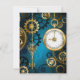 Turquoise, textured, steampunk background with brass and gold gears, a silver key and the clock. Steampunk style.