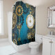 Turquoise, textured, steampunk background with brass and gold gears, a silver key and the clock. Steampunk style.