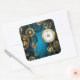 Steampunk turquoise Background with Gears Square Sticker