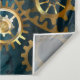 Turquoise, textured, steampunk background with brass and gold gears, a silver key and the clock. Steampunk style.