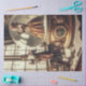 Part of a fantasy steampunk art piece, these two performers are part of an elegant Victorian snow globe. With the singer inside the globe and the guitarist just outside, both are ready to perform in this whimsical world. This tissue paper is perfect for crafts like decoupage.