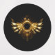 Shiny mechanical wings, with gears and brass round banner. Steampunk