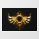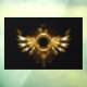 Shiny mechanical wings, with gears and brass round banner. Steampunk