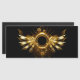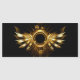 Shiny mechanical wings, with gears and brass round banner. Steampunk