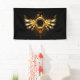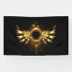 Shiny mechanical wings, with gears and brass round banner. Steampunk