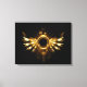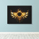 Shiny mechanical wings, with gears and brass round banner. Steampunk