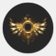 Shiny mechanical wings, with gears and brass round banner. Steampunk